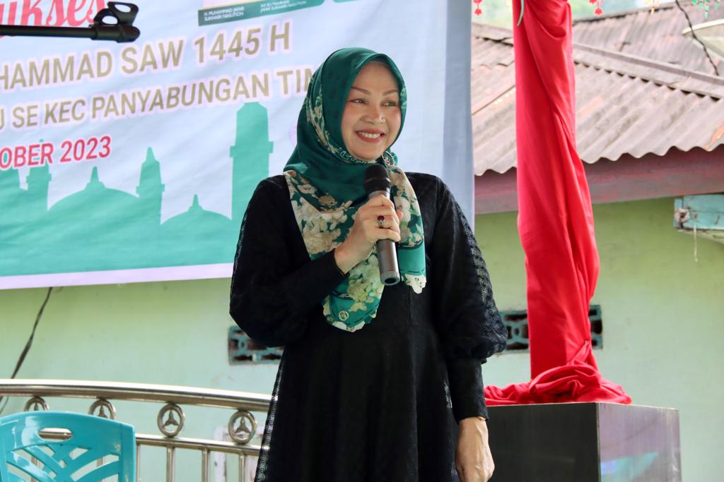 MADINA (Berita): Ketua Tim Penggerak Pemberdayaan Kesejahteraan Keluarga (TP PKK) Mandailing Natal Elli Maharani Ja’far Sukhairi Nasution, menghadiri tablig akbar dan maulid nabi Muhammad SAW 1445 H di Desa Sirangkap Kec. Panyabungan Timur, Selasa (10/10).