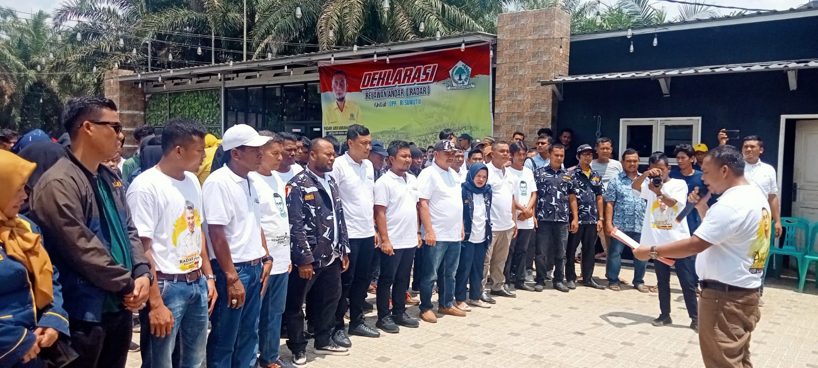 Deklarasi tersebut turut dihadiri, Ketua Radar Gusti Putra Hajoran Siregar, SE, bendahara Mahmud Pratama Harahap ST dan Sekretaris Radar, Mardan Hanafi Hasibuan, SH MH, serta ratusan relawan Radar yang memadati halaman Cafe tersebut.