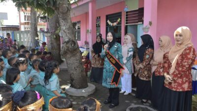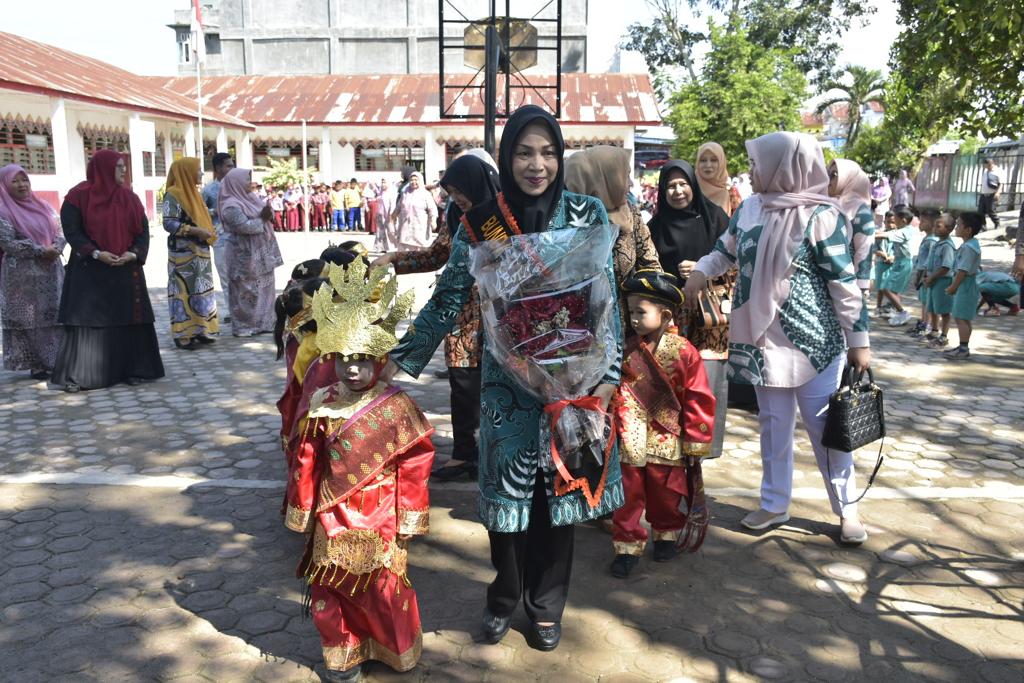 MADINA (Berita): Murid Pendidikan Anak Usia Dini (PAUD) bersemangat menyambut hangat kedatangan Bunda PAUD Kab. Mandailingnatal Hj Eli Mahrani Jafar Sukhairi Nasution ke sekolah mereka, Kamis (26/10).