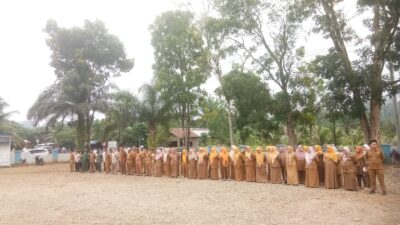 MADINA (Berita): Sekira 100 orang mengikuti kegiatan apel pagi gabungan di halaman Kantor Camat Rantobaek, Kab. Mandailingnatal, Senin (2/10).