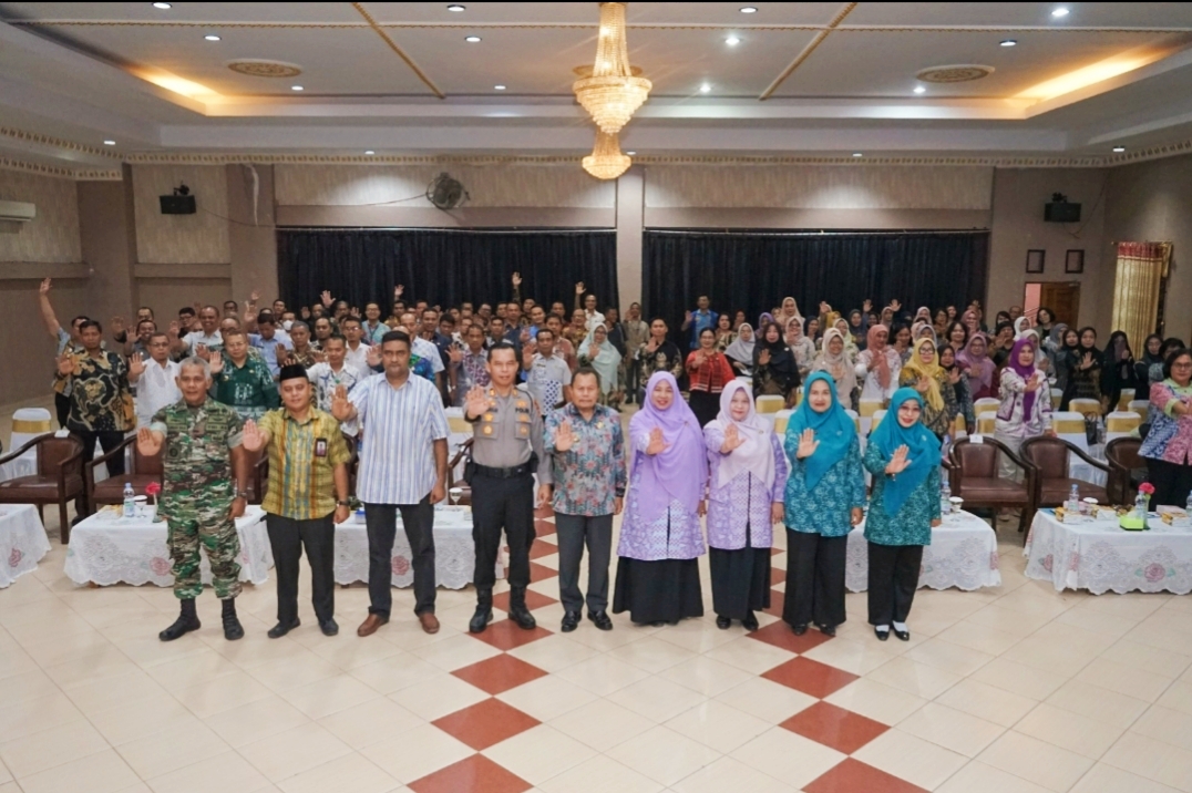 Diakhir kegiatan Asisten Pemerintahan dan tamu undangan melakukan penandatanganan komitmen bersama rembuk stunting Kabupaten Asahan Tahun 2024. (min)