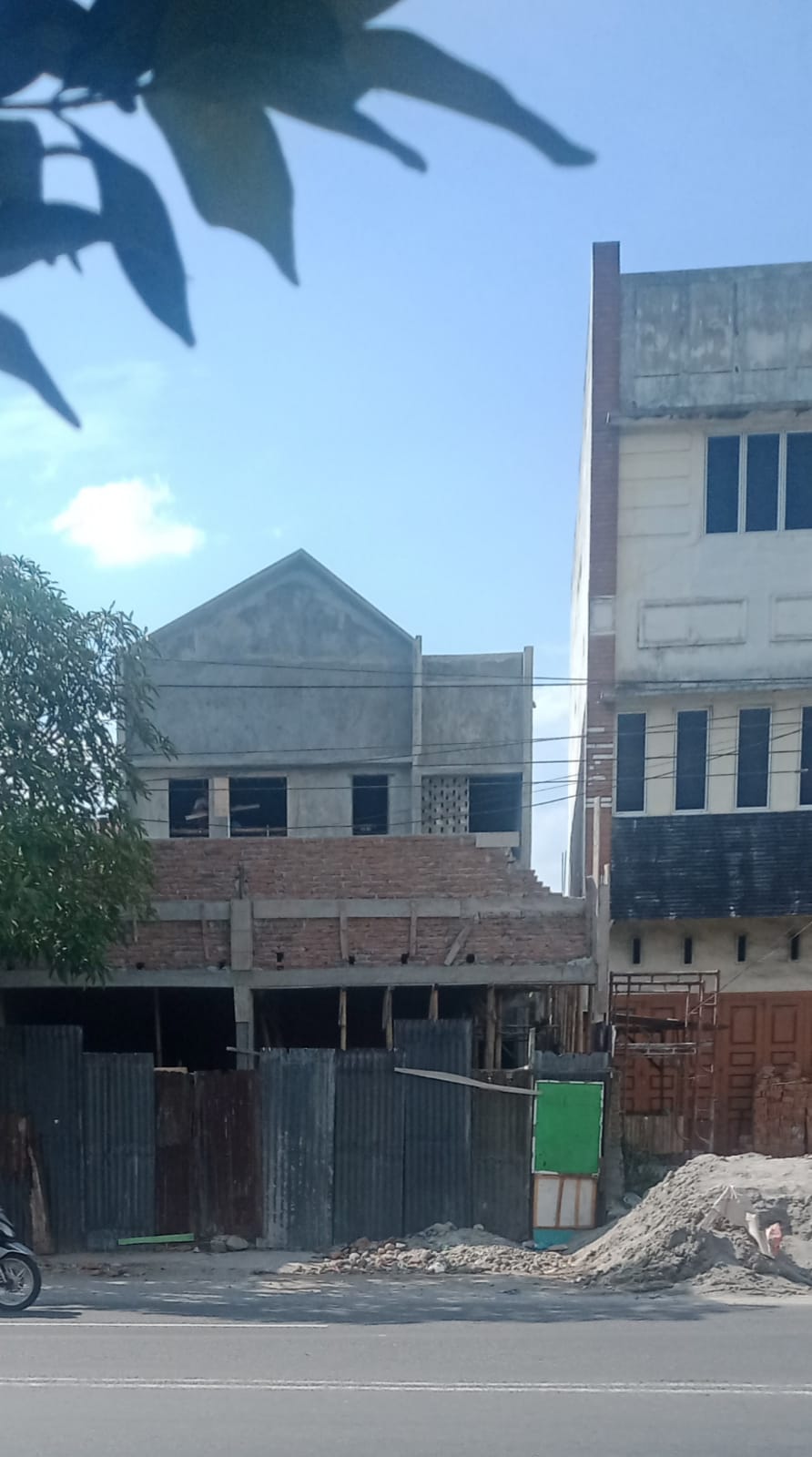 Bangunan Ruko Dua tingkat yang terdiri dari Dua unit dengan masa pengerjaan sudah mencapai 75 persen diduga tidak memiliki izin bahkan bangunan tersebut diduga telah melanggar Garis sempadan bangunan (GSB).