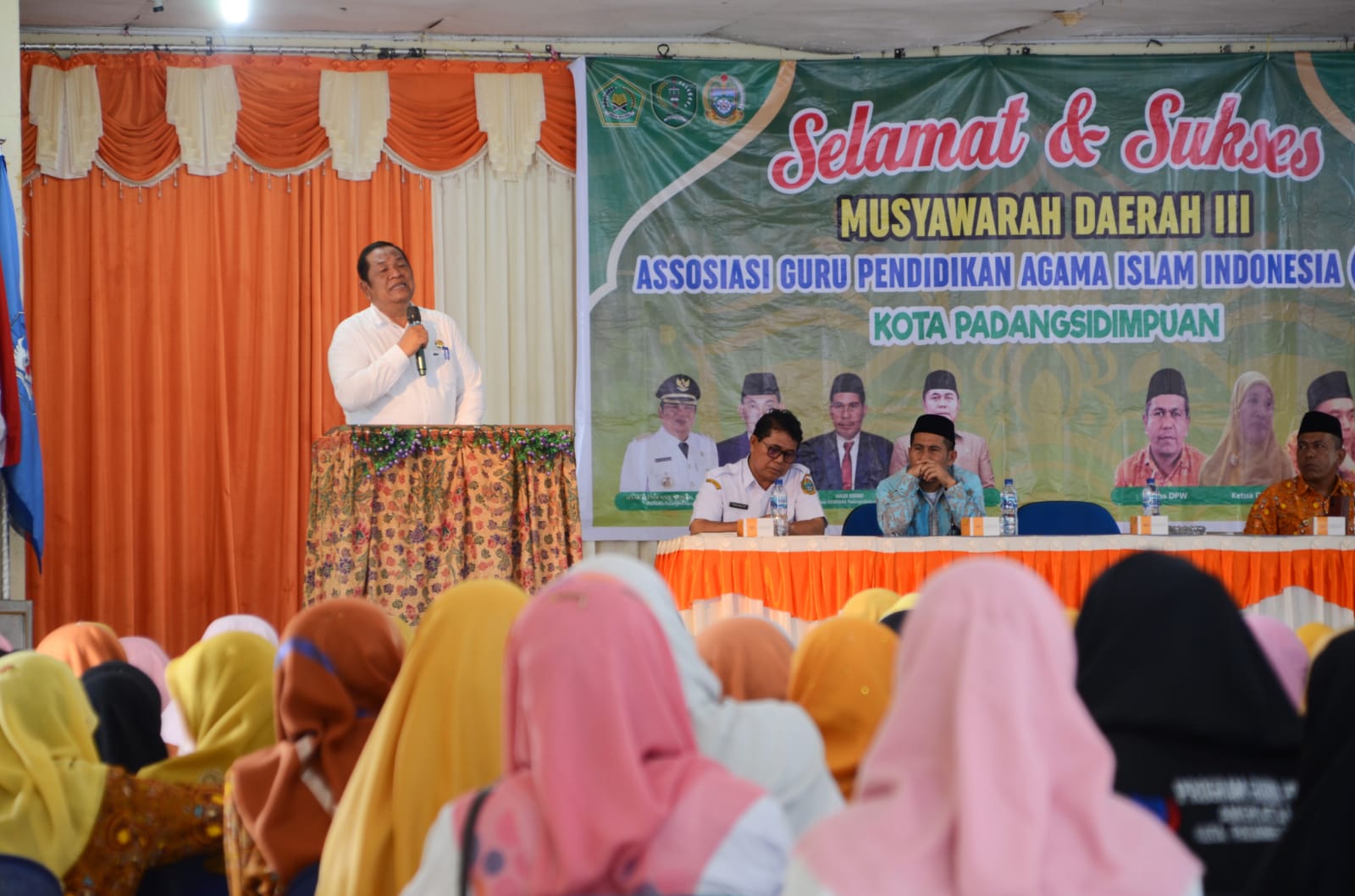 PADANGSIDIMPUAN (Berita): Wali Kota Padangsidimpuan, Irsan Efendi Nasution membuka Musyawarah Daerah Asosiasi Guru Pendidikan Agama Islam (AGPAII) Kota Padangsidimpuan di aula SMK Negeri 1 Padangsidimpuan, Rabu (20/9).