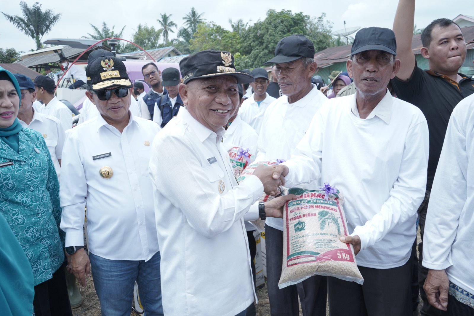 ASAHAN (Berita) : Bupati Asahan H. Surya, BSc mendampingi Penjabat (Pj) Gubernur Sumatera Utara (Gubsu) Hassanuddin melakukan penanaman cabai di Desa Serdang Kecamatan Meranti, Selasa (20/02/2024). Sebelum melakukan penanaman cabai Pj. Gubsu dan Bupati Asahan menyerahkan bibit dan bantuan alat pertanian kepada kelompok tani berupa Combine Harvester, Hand Traktor, Hand Sprayer, benih padi sawah, jagung, bawang merah dan cabai merah kepada kelompok tani di Kabupaten Asahan.