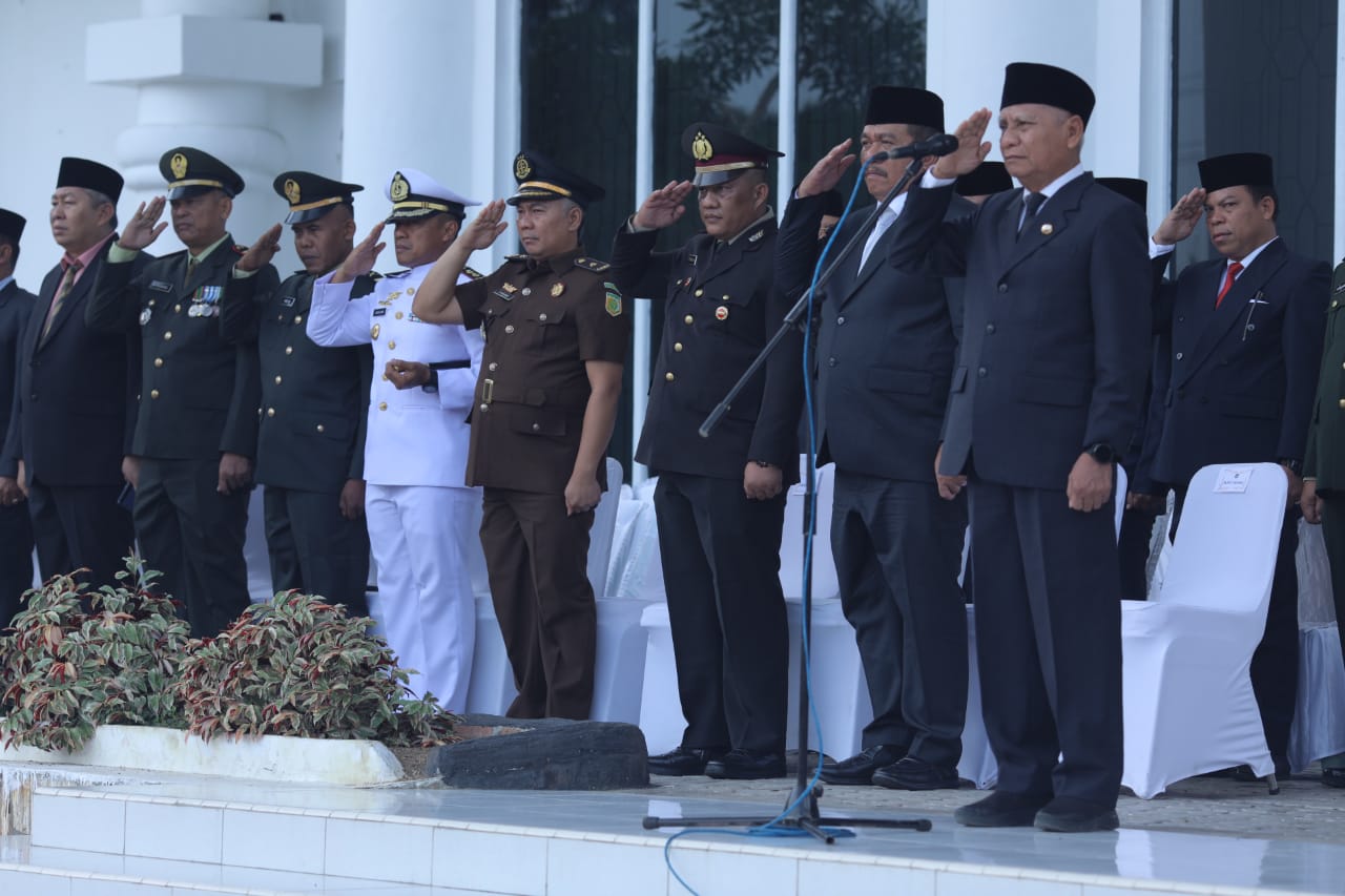 ASAHAN (Berita): Bupati Asahan H Surya, BSc memimpin Upacara Hari Bela Negara ke-76 Tahun tingkat Kabupaten Asahan di Halaman Kantor Bupati Asahan, Kamis (19/12/2024).