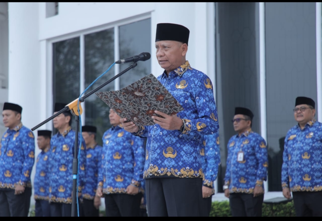 ASAHAN (Berita): Bupati Asahan H Surya, BSc memimpin upacara Hari Kesadaran Nasional Bulan Pebruari 2024 di halaman Kantor Bupati Asahan, Senin (19/2/2024).