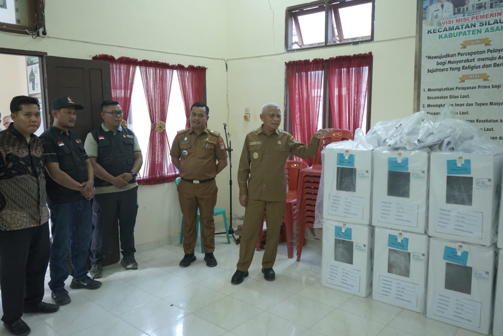 ASAHAN (Berita): Bupati Asahan H Surya BSc didampingi Asisten Administrasi Umum dan OPD melakukan peninjauan persiapan Pemilihan Kepala Daerah 2024 di berbagai Kecamatan yang ada di Kabupaten Asahan, Senin (25/11/2024).