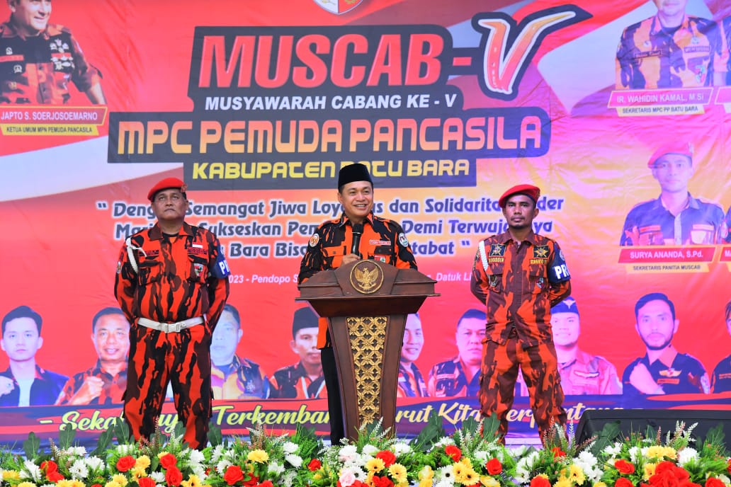 BATU BARA (Berita): Bupati Batu Bara Ir.H. Zahir M.AP hadiri Musyawarah Cabang Pemuda Pancasila Ke – V tahun 2023 di Gedung Pendopo Serbaguna Desa Empat Negeri Simpang Dolok, Kecamatan Datuk Lima Puluh, Kabupaten Batu Bara Sabtu (11/03/23).
