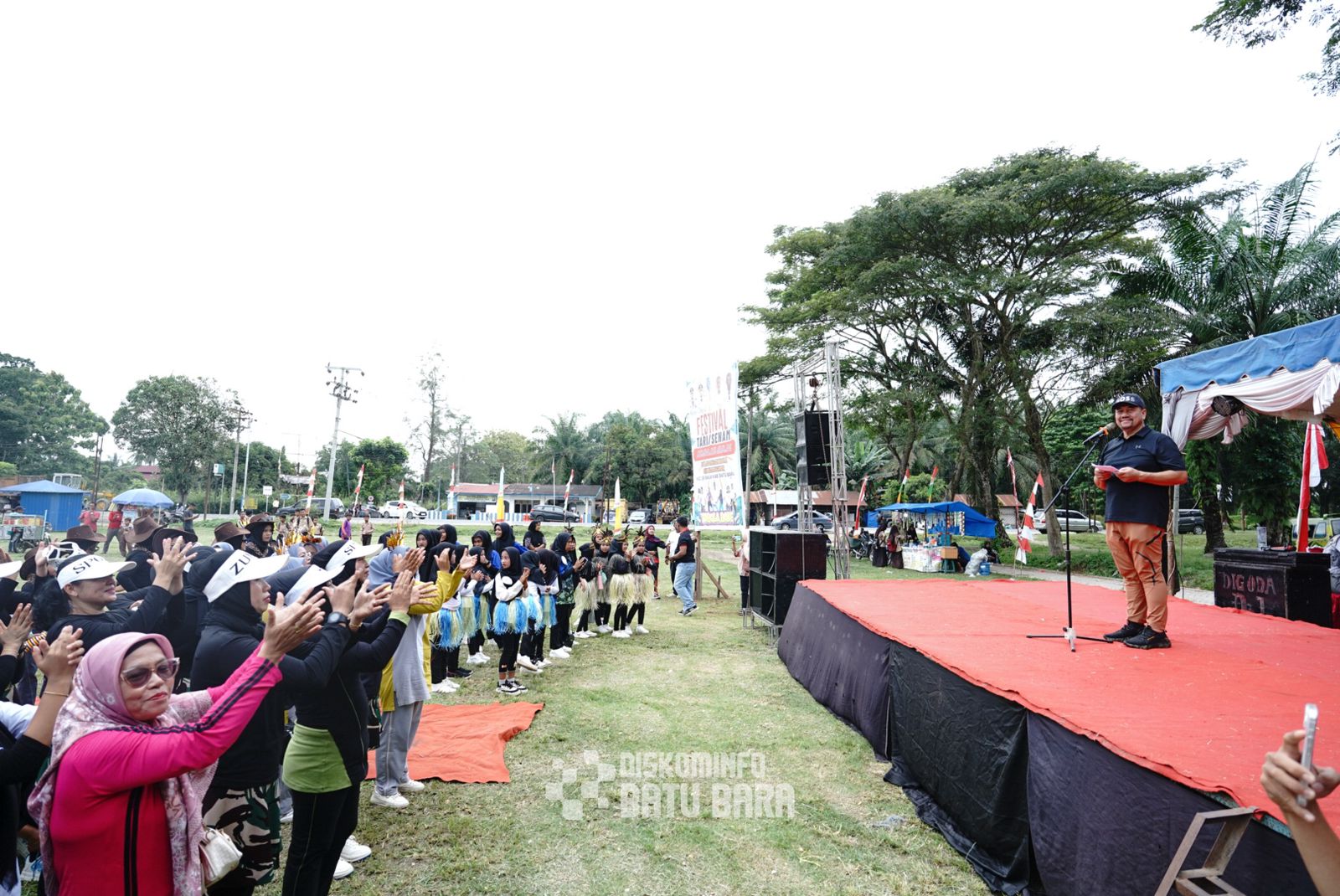 BATUBARA (Berita): Bupati Batubara H Baharuddin Siagian, SH, MSi, bersama Wakil Bupati Syafrizal, SE, MAP, dan Wakil Rektor Universitas Asahan (UNA) Hadi Suriono, membuka Festival Tari/Senam Tabola Bale di Lapangan Bola Sei Bejangkar, Kecamatan Sei Balai, Sabtu (13/9/2025).