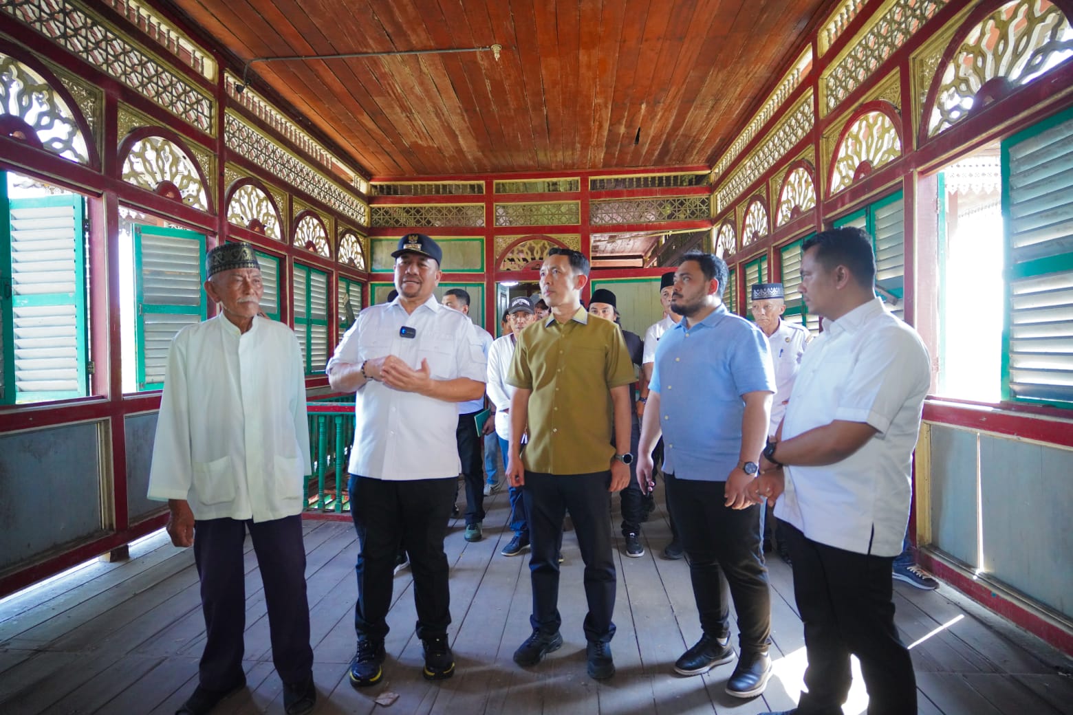 Azminsyah ahli waris Kedatukan Istana Niat Lima Laras sembari ahli waris memberikan penjelasan mengenai sejarah serta nilai-nilai budaya yang terkandung dalam bangunan Istana Niat.