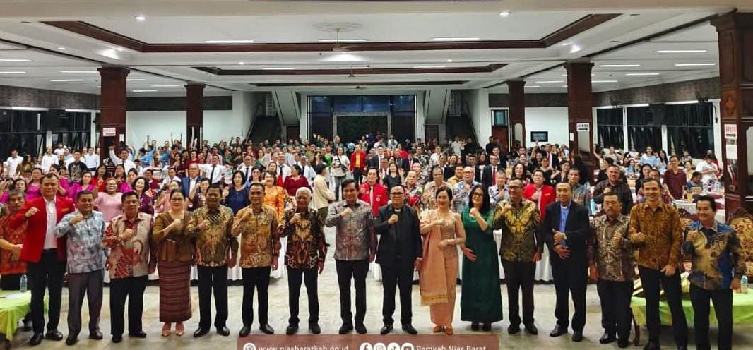Medan (beritasore.co.id): Bupati Nias Barat Eliyunus Waruwu, S.Pt., M,Si dan Wakil Bupati Nias Barat Sozisokhi Hia, SH., MM serta Ny. Nur Awani Sozisokhi Hia Menghadiri Syukuran Perayaan Natal Persatuan Masyarakat Nias Barat Indonesia (PMNBI) di Gedung Gorga Mangampu Tua Jln. Saudara No. 73, Kel. Sudirejo 1, Kota Medan (Minggu, 18/01/2026).