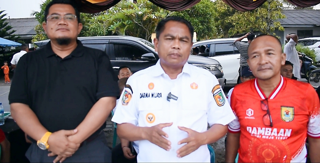Berita Sore/Azwen Bupati Sergai H Darma Wijaya, didampingi Sekjen Panitia Forkopimda Cup U23, Edi Saputra (baju merah) dan Manajer PT Socfindo Bangun Bandar, Dolok Masihul, Riki Irawan, ketika memberikan keterangan kepada wartawan Rabu (9/8).