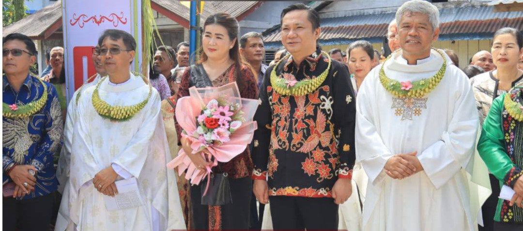 NIAS BARAT (Berita): Bupati Nias Barat, Eliyunus Waruwu, SPt, MSi bersama Ny. Elvita Eliyunus Waruwu, menghadiri pemberkatan Gereja Katolik Stasi St. Hendrikus Tuhemberua, Paroki Salib Suci Mandrehe, di Desa Tuhemberua, Kecamatan Mandrehe. Minggu (26/10/2025).