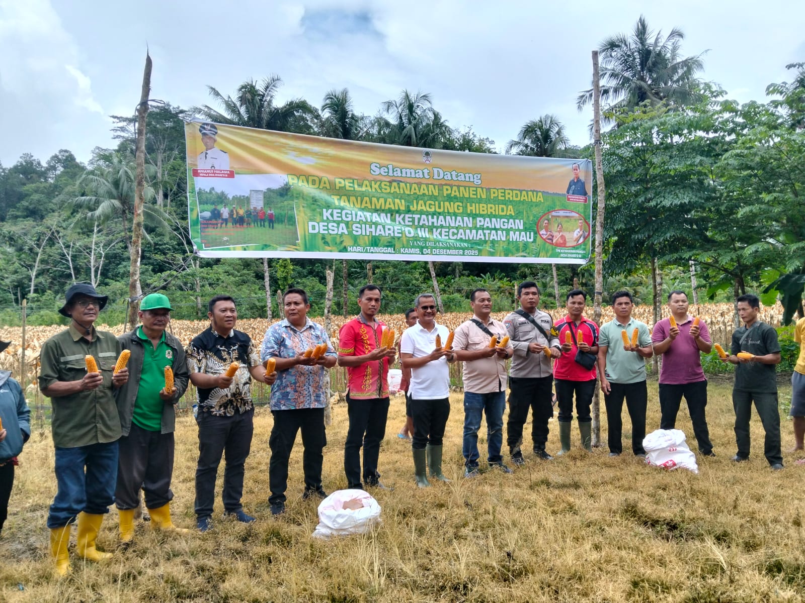 Nias (Berita) Panen Perdana Jagung Hibrida di lokasi Ketahanan Pangan dusun III desa Sihare’o III Kecamatan Ma’u Kabupaten Nias, pada hari Kamis (4/12/2025).