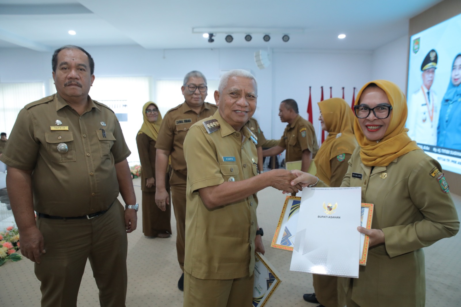 Di akhir, Bupati Asahan beserta Wakil Bupati Asahan memberikan sertifikat hasil penilaian kepatuhan pelayanan penyelenggaraan publik Pemerintah Kabupaten Asahan.