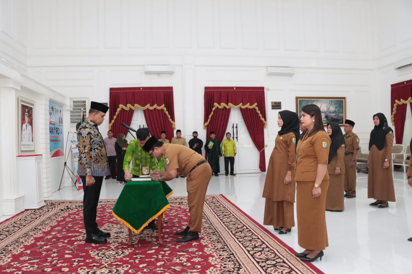 SERGAI (Berita): Bupati Serdang Bedagai, H Darma Wijaya diwakili Sekretaris Daerah Kabupaten (Sekdakab) HM Faisal Hasrimy, AP, MAP melantik dan mengambil sumpah/janji 10 orang PNS dengan Jabatan Kepala Sekolah di Kantor Bupati Sergai di Sei Rampah, Jumat (22/12)
