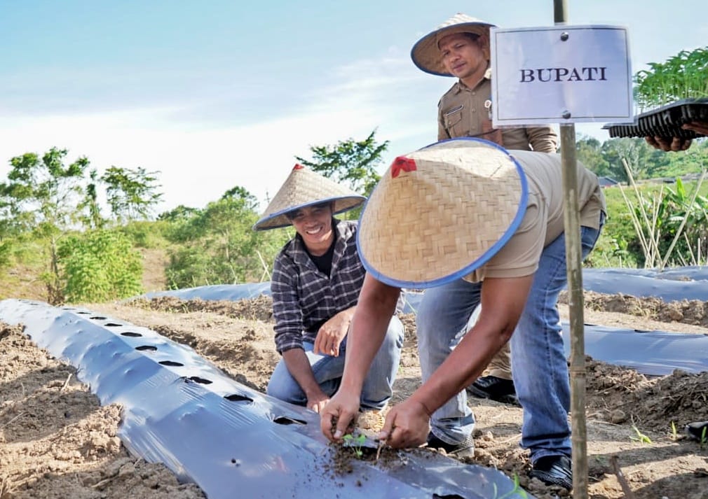 SIMALUNGUN (Berita): Bupati Simalungun Radiapoh Hasiholan Sinaga melakukan penanaman cabai dengan metode Fertigasi (irigasi tetes) di sekitar lokasi TPA di Kecamatan Panombean Panei, Simalungun, Sumut, baru baru lalu pada Selasa (16/7/2024).