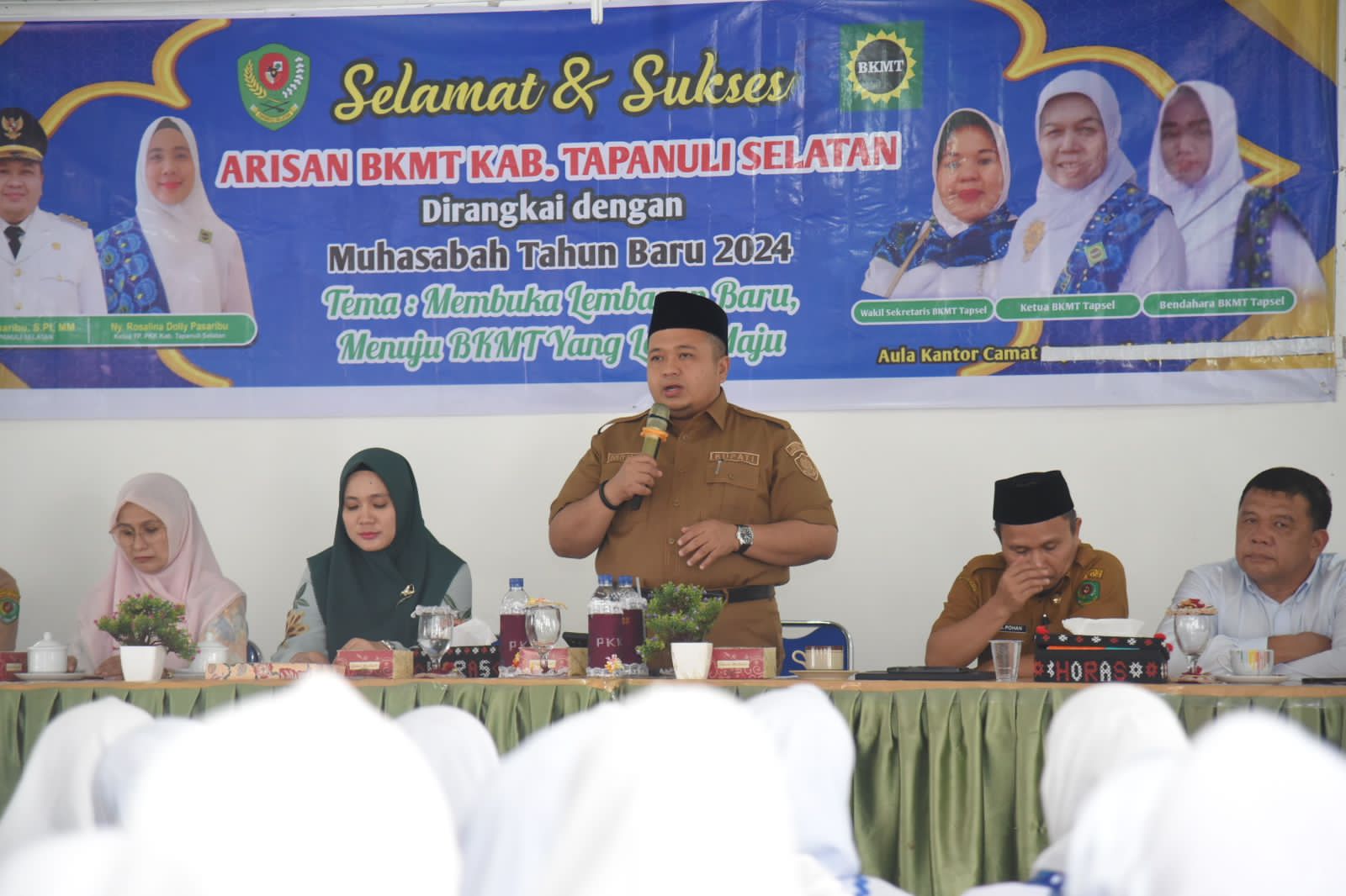 Berita Sore/Birong RT Teks poto: Bupati Tapanuli Selatan, Dolly Pasaribu didampingi Ketua TP. PKK Tapsel, Ny. Rosalina Dolly Pasaribu saat menghadiri Arisan BKMT Kab.Tapanuli Selatan di Aula Kantor Camat Sipirok, Senin (5/2).