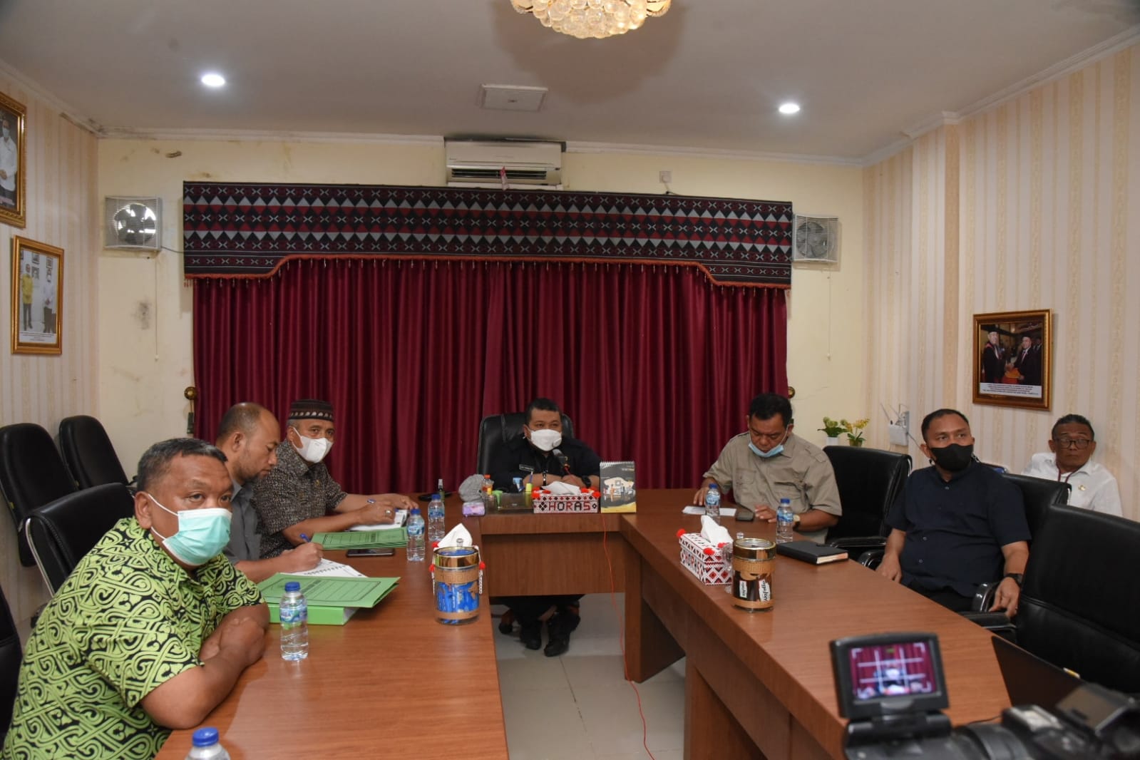 Bupati Tapanuli Selatan (Tapsel), H Dolly Pasaribu, SPt, MM, saat menjadi narasumber dalam acara perspektif baru yang dilaksakan secara zoom meeting di Ruangan Rapat Bupati Tapsel, Lantai II, Jumat (12/11). beritasore/Birong RT