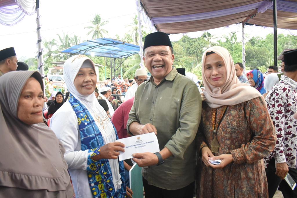Serta penyerahan bantuan 10 sajadah dan 10 mukenah dari Badan Koordinasi Kegiatan Kesejahteraan Sosial (BKKKS) Kabupaten Tapsel. (Rong)