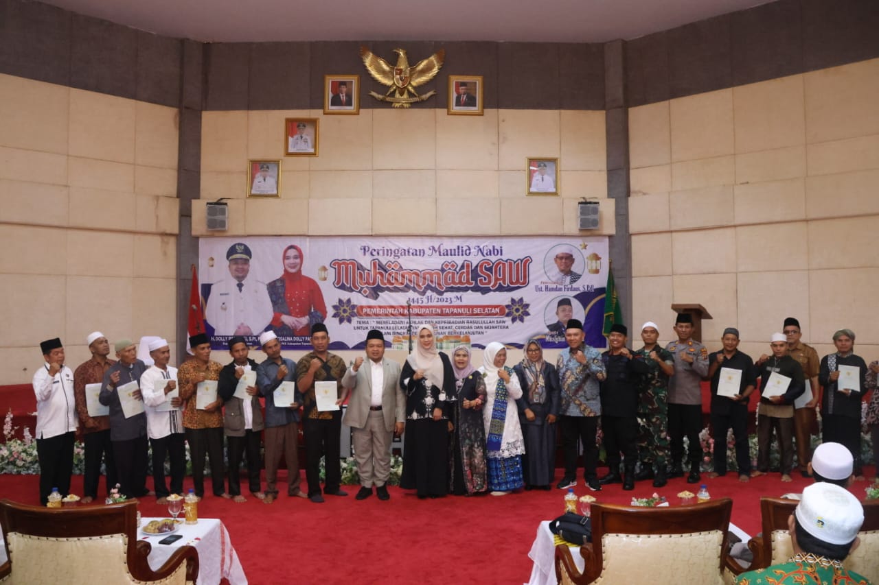 TAPSEL (Berita): Bupati Tapanuli Selatan (Tapsel) Dolly Pasaribu mengajak seluruh masyarakat Tapsel untuk dapat meneladani perilaku Rasulullah SAW untuk diterapkan dalam kehidupan sehari-hari.