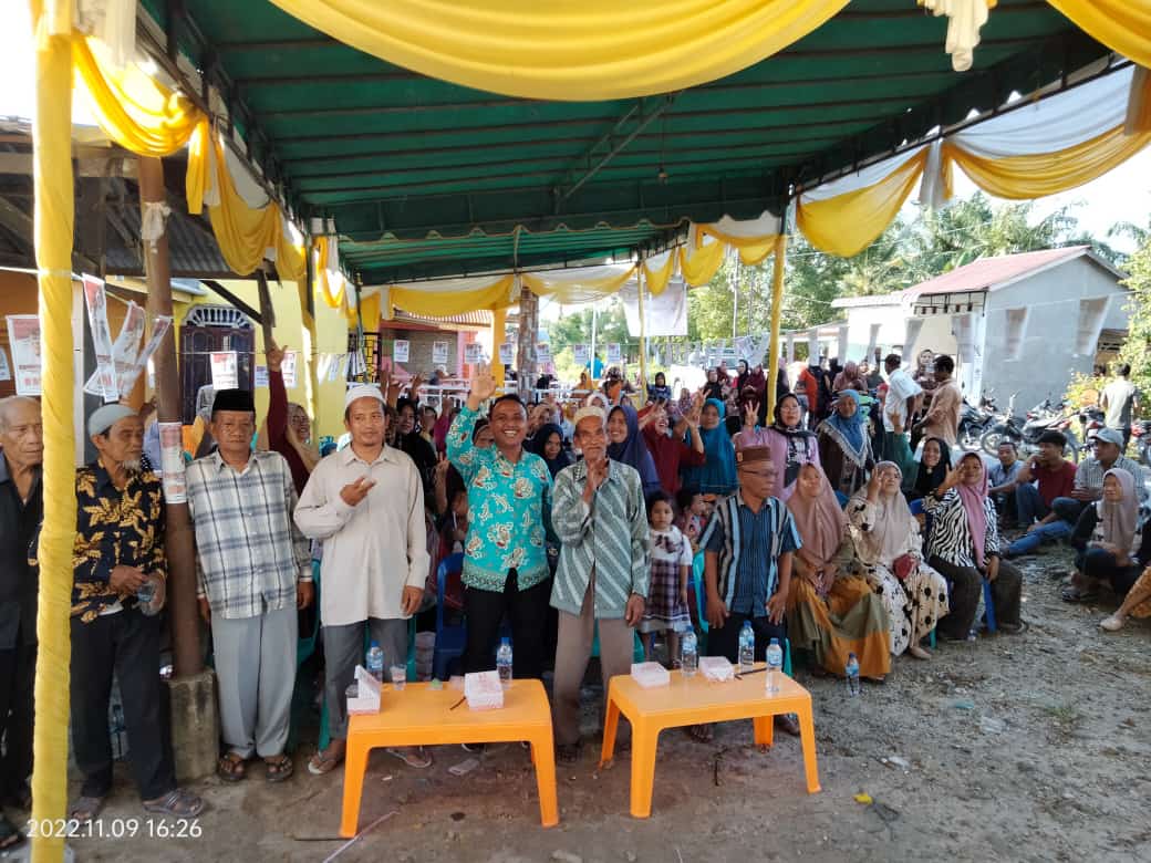 NIBUNG HANGUS (Berita): Masa pendukung Cakades Bandar Sono Nomor urut 3 Fadli Mahsan ramai aman dan lancar pada kampanye pertama di Dusun II Desa Bandar Sono Kecamatan Nibung Hangus Kabupaten Batu Bara Rabu (9/11/2022).