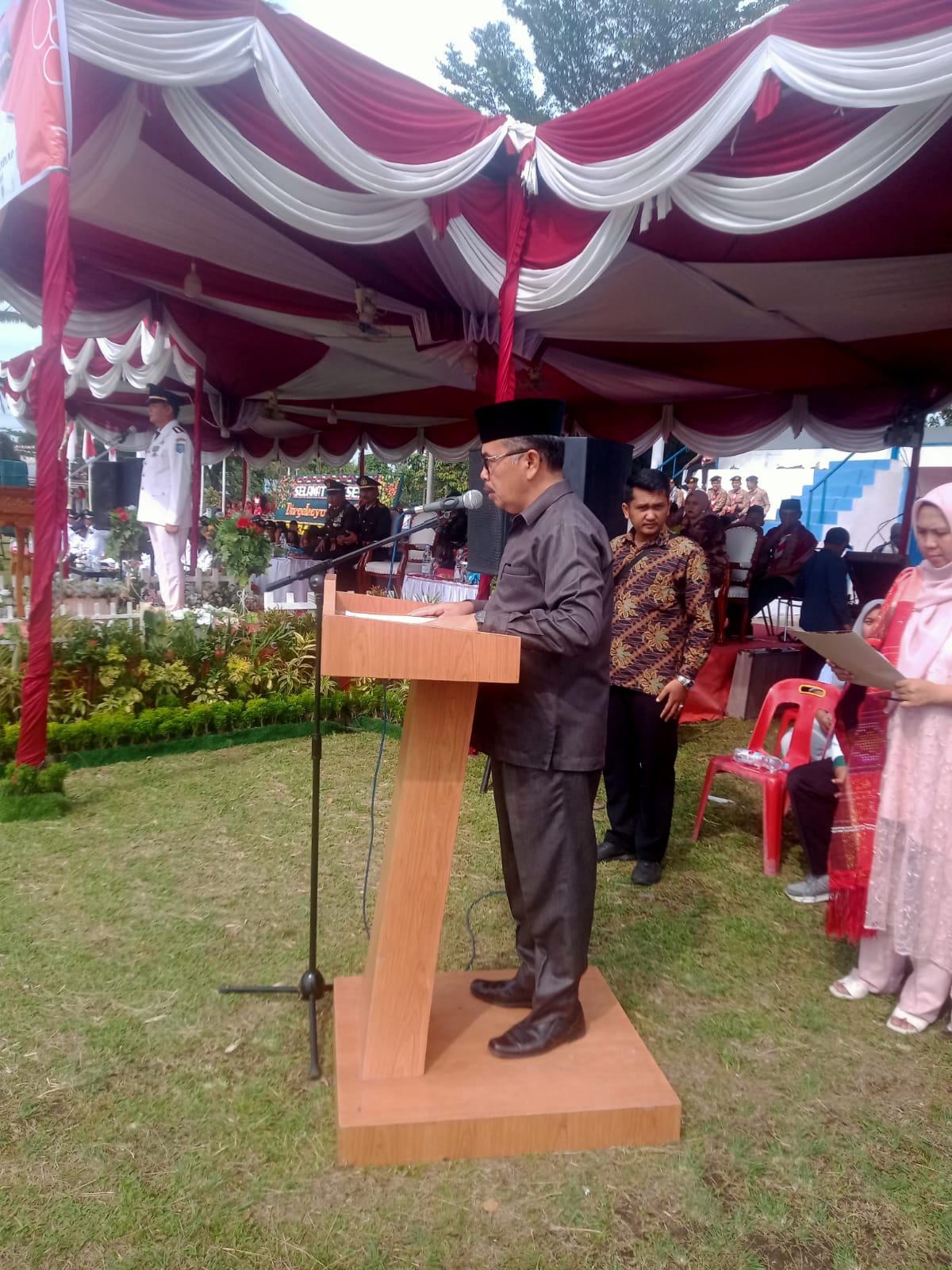 Sedangkan anggota DPRD Kab.Deliserdang Zul Amri.ST sebagai pembaca teks Proklamasi sementara Drs.Jajuli Daulay Kepala Urusan Agama pembaca doa.