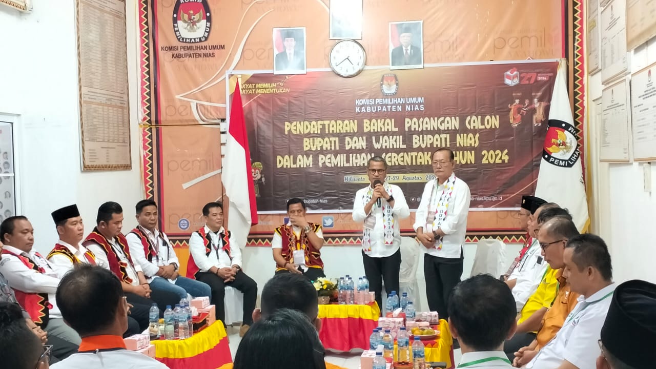 “Untuk pasangan calon Bupati dan Wakil Bupati Nias, Yaatulo Gulo i dan Arota Lase, didukung oleh gabungan partai politik yang sesuai dengan PKPU. Untuk bisa mengusung calon harus memenuhi syarat minimum 10 persen dari suara sah hasil Pemilu 2024 yaitu 6.365, begitu juga dari sisi umur, keduanya sudah lebih dari 25 tahun,” ucapnya.