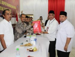 Paslon Harun – Ichwan dan rombongan begitu sampai diterima langsung Ketua KPUD dan Komisioner, untuk masuk ke Aula Pendaftaran ada sekitar 1 jam Paslon dan Ketua serta pengurus partai pengusung bersama KPU dalam proses melengkapi berkas persyaratan.