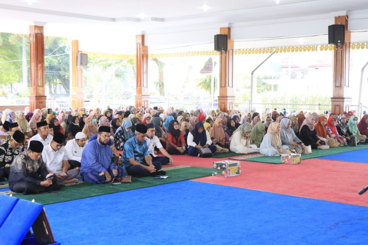 Pengajian ramadhan perdana dihadiri Kakan Kemenag Kota Binjai Drs. Saparuddin, MA, Ketua TP. PKK Kota Binjai Ny. Dra. Hj. Nurhayati Amir Hamzah, Ketua I TP. PKK Kota Binjai Ny. Winda Widya Rizky Yunanda Sitepu, , Ketua Dharma Wanita Persatuan Kota Binjai Ny. Ade Irma Irwansyah Nasution, para Pimpinan OPD, Personil Kodim 0203/Lkt dan Raider 100/Ps, para pengurus Korpri se-Kota Binjai serta para pengurus TP. PKK Kota Binjai.(RR)