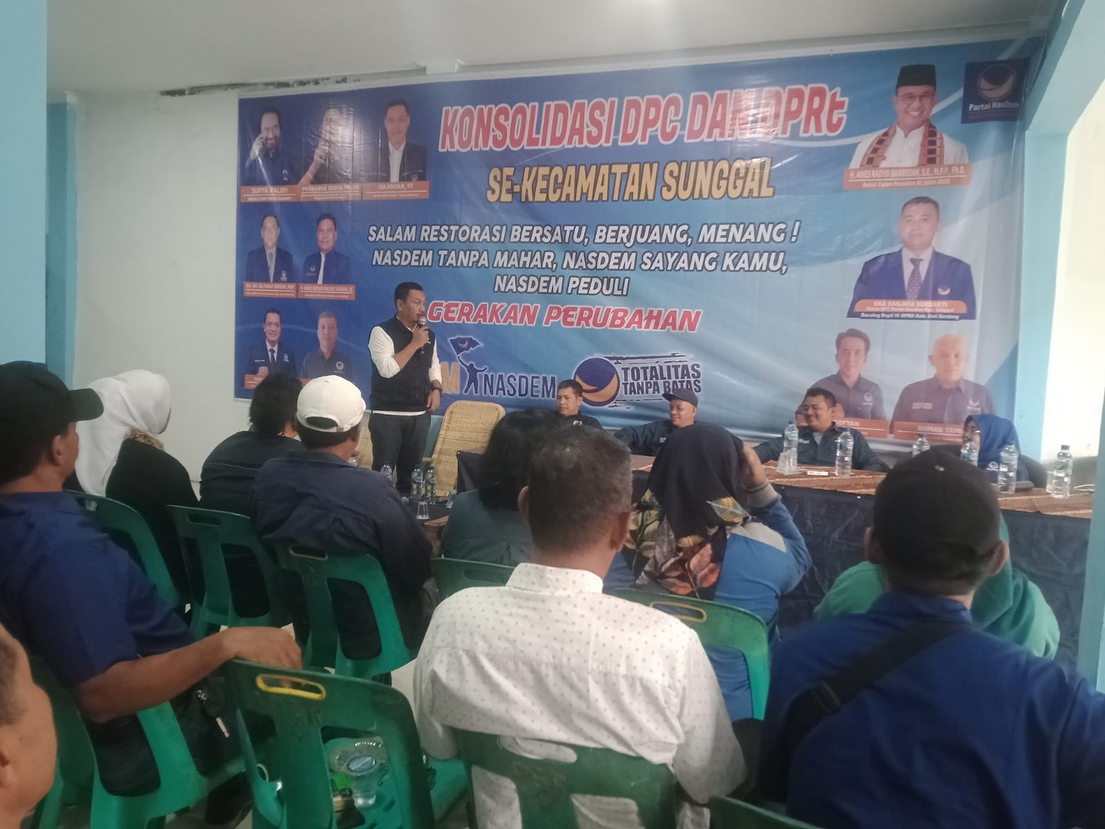 DELI SERDANG (Berita): DPC Nasdem Kec.Sunggal DS bersama DPRt mengelar rapat konsolidasi di kantor DPC Nasdem jalan Sei Mencirim Desa Sei Semayang Kec.Sunggal DS , Sabtu (28/1)