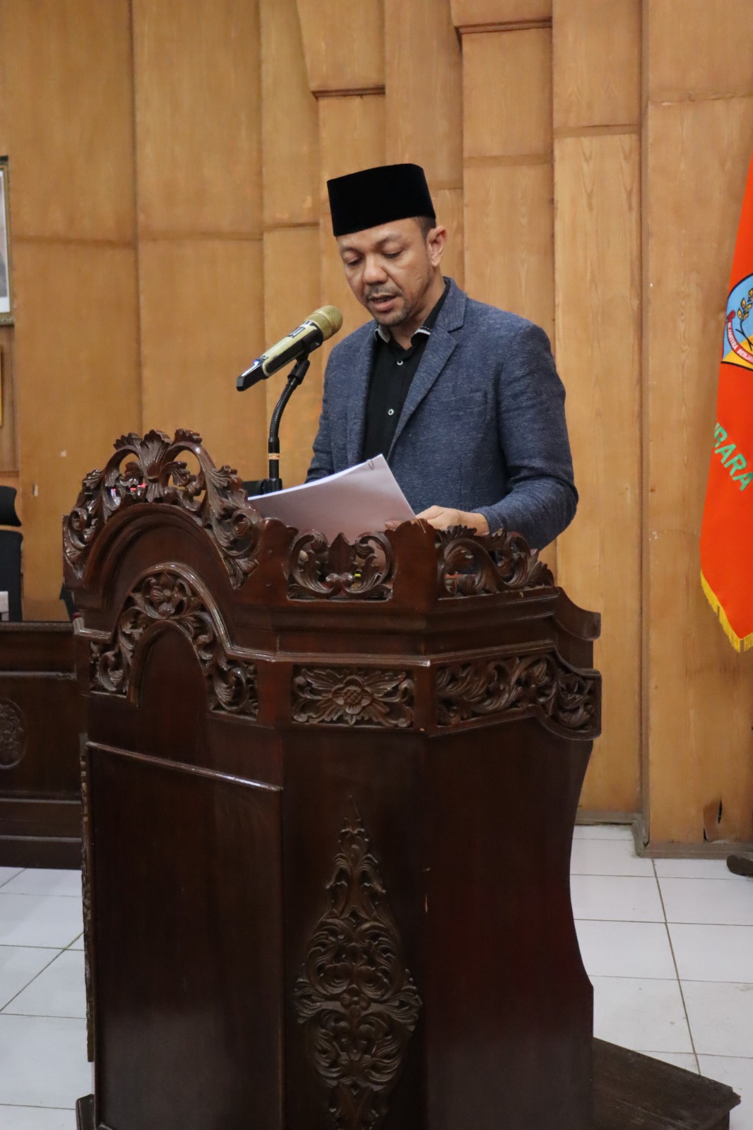 BATU BARA (Berita): DPRD Batu Bara gelar rapat paripurna Pansus terhadap Laporan Keterangan Pertanggungjawaban (LKPj) dan pemberian rekomendasi Bupati Batu Bara Tahun Anggaran 2022 digedung DPRD Jln.Perintis Kemerdekaan Kecamatan Limapuluh Kota, Kamis (27/4/2023).
