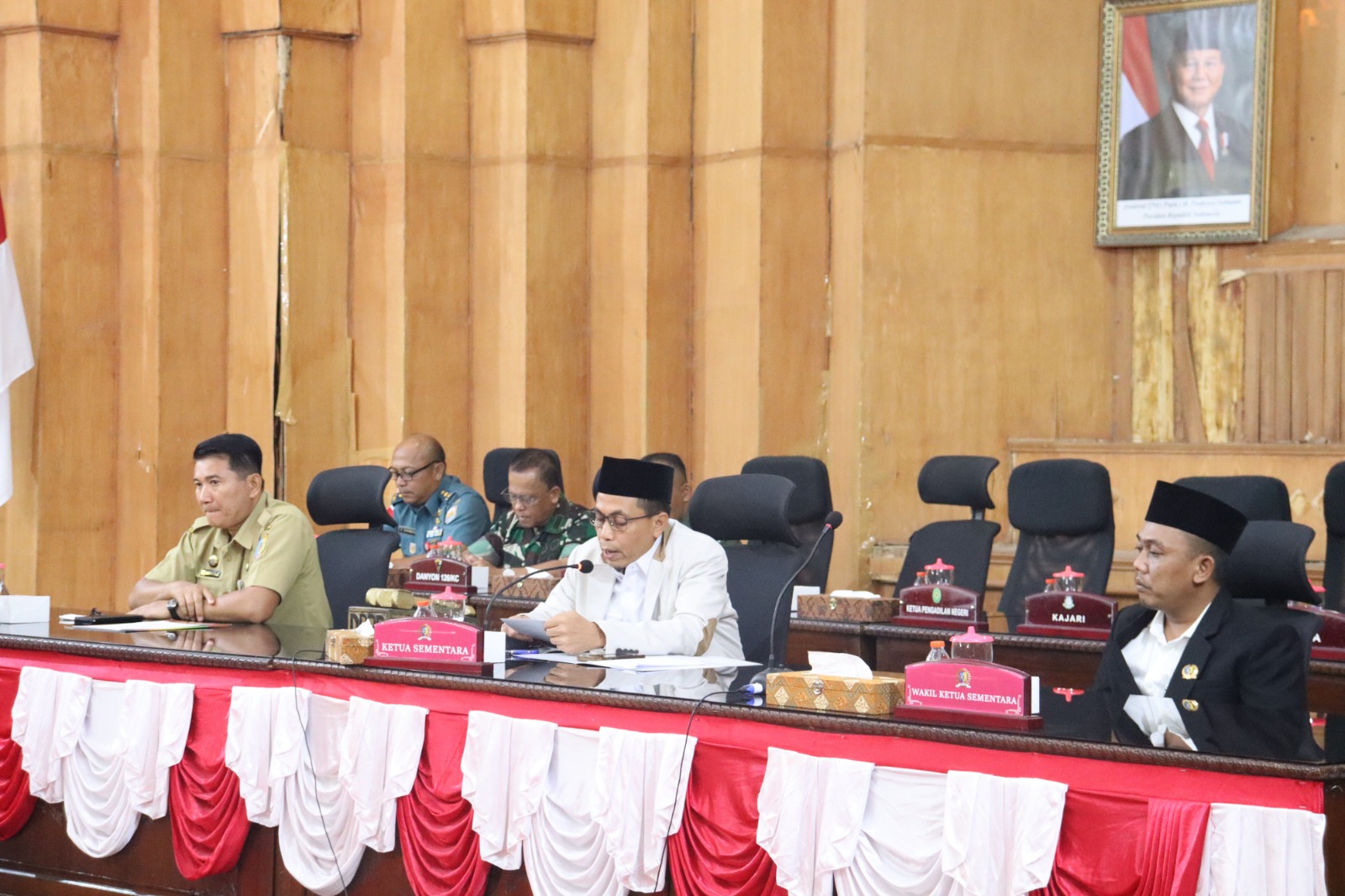 Hadir Ketua DPRD sementara Kabupaten Batu Bara Safii SH,Wakil Ketua DPRD sementara Kabupaten Batubara Nurhaji, Penjabat (Pj) Bupati Batubara dihadiri Asisten Pemerintahan dan Kesejahteraan Rakyat Sekdakab Batubara Edwin Aldrin Sitorus SE.,MSI, Plt Sekretaris DPRD Kabupaten Batubara Izhar Fauzi dan seluruh Anggota DPRD, Para OPD serta unsur Forkopimda.(als)
