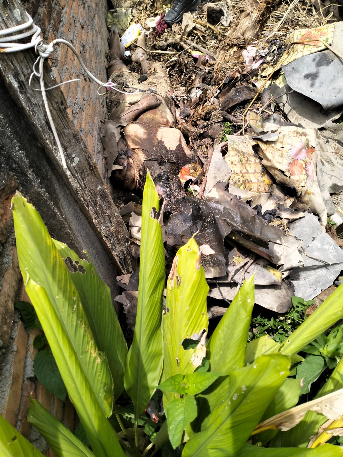 Mayat seorang wanita sudah membusuk di tumpukan sampah belakang rumah warga Dusun V Pulau Gambar, Kecamatan Serba Jadi, Kabupaten Serdang Bedagai, Senin, 9 Maret 2026. beritasore.co.id/Azwen