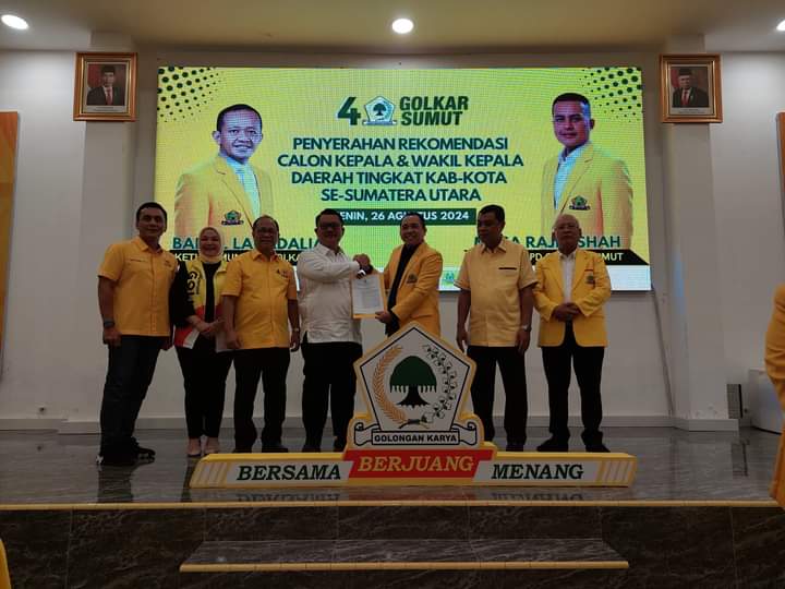 Surat Rekomendasi tersebut ditanda tangani langsung Ketua Umum Partai Golkar Bahlil Lahadalia dan Sekretaris M Sarmuji yang selanjutnya memerintahkan calon yang terbaik untuk maju sebagai kontestan pada Pemilihan Kepala Daerah (Pilkada) serentak mendatang.