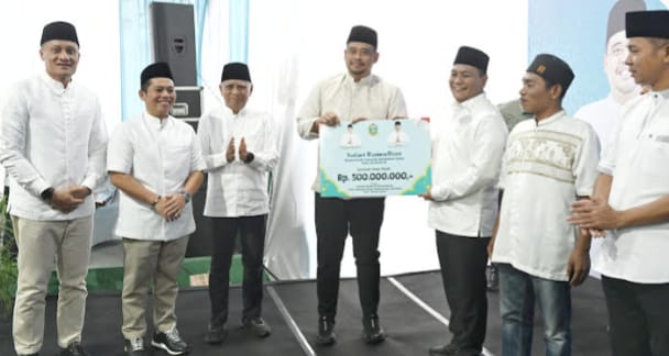 PALAS (beritasore.co.id): Gubernur Sumatera Utara (Sumut) Bobby Nasution menyerahkan hibah sebesar Rp500 juta kepada BKM Masjid Agung Al Munawaroh, Padanglawas (Palas).