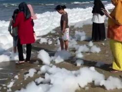 Munculnya gumpalan busa putih di sepanjang Pantai Tohia tersebut cukup menghebohkan dan.menarik perhatian warga.