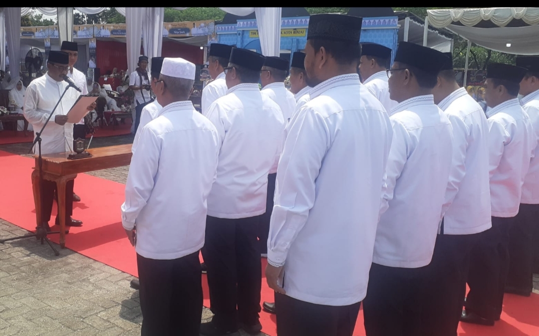 BINJAI (Berita): H Irwansyah Nasution, SSos, MM kembali dilantik Wali Kota Binjai Drs H Amir Hamzah, MAP sebagai ketua Lembaga Pengembangan Tilawatil Quran (LPTQ) Kota Binjai periode 2023-2028 Selasa (30/4/2024) di arena eks MTQN Provinsi Sumut Jalan Bejomuna Binjai.
