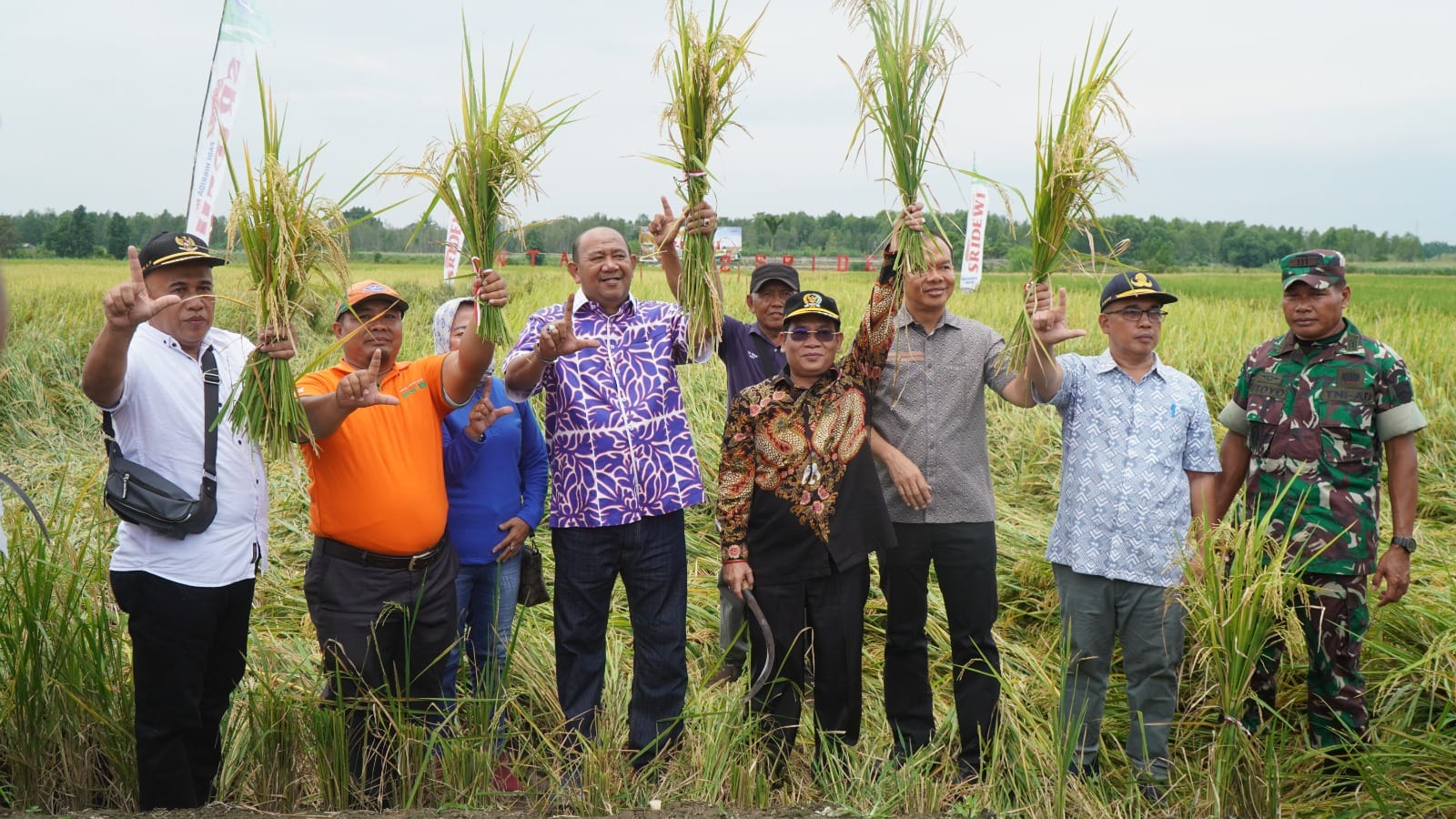Plt Bupati Langkat H.Syah Afandin SH hadiri acara Panen Raya Padi di Desa Pasar VI Kwala Mencirim Kecamatan Sei Bingai, Langkat, Sabtu (05/8/2023).