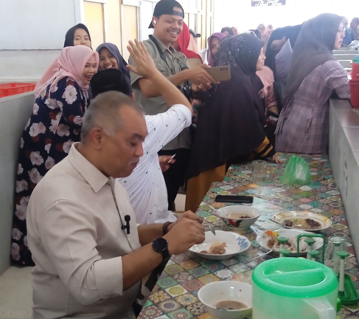 Emak-emak pun berdatangan dan memesan lontong Sertek untuk makan bersama Sang Calon Bupati.