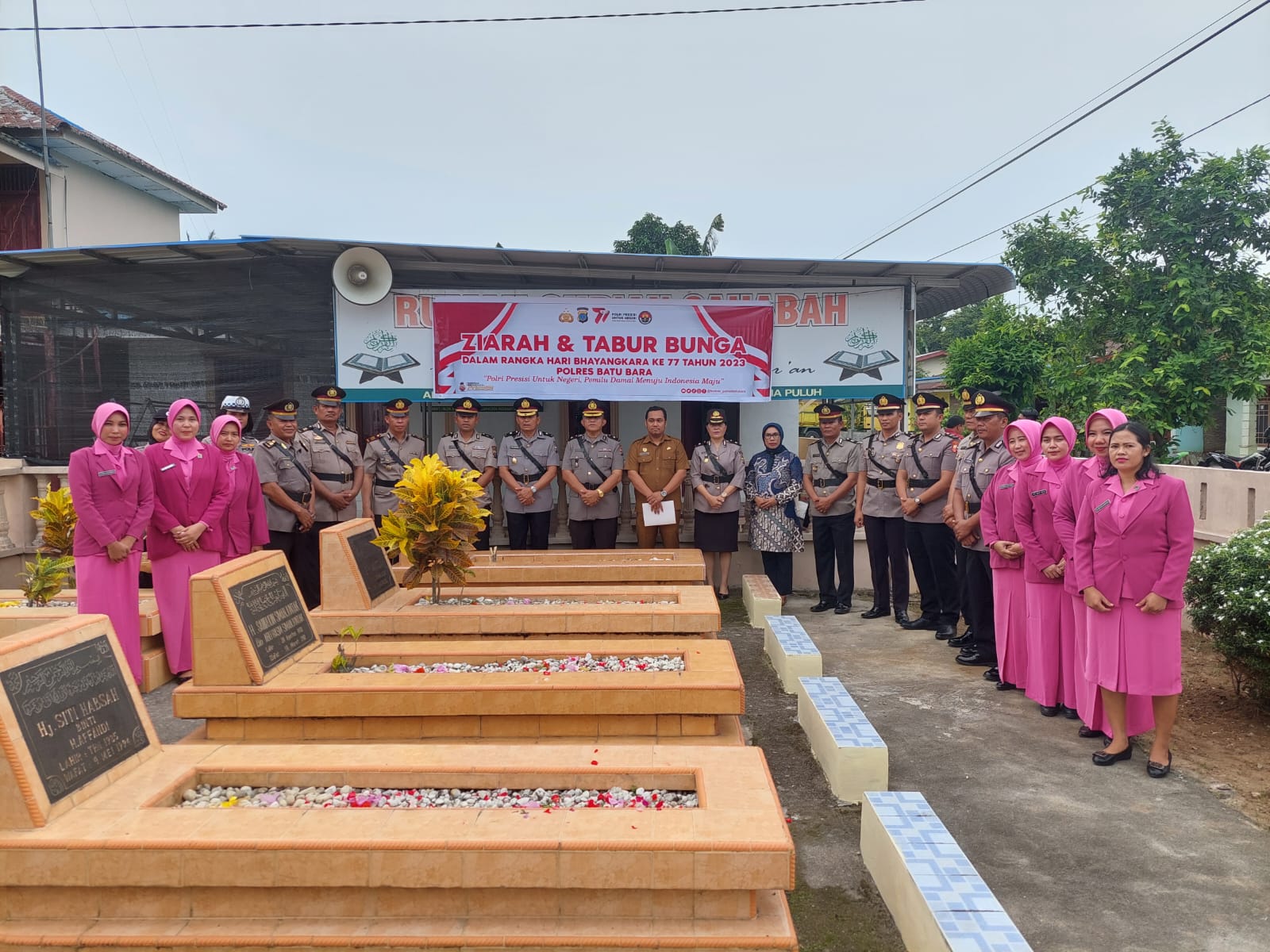 KBO Reskrim IPTU Abdi Tansar SH, Para Kanit Polres Batu Bara,Bhayagkari Polres dan Polsek Lima Puluh, Personil Polres dan Polsek Lima Puluh yang terseprin mengikuti ziarah & tabur bunga dalam Rangka Hari Bhayangkara Ke 77 Tahun 2023.