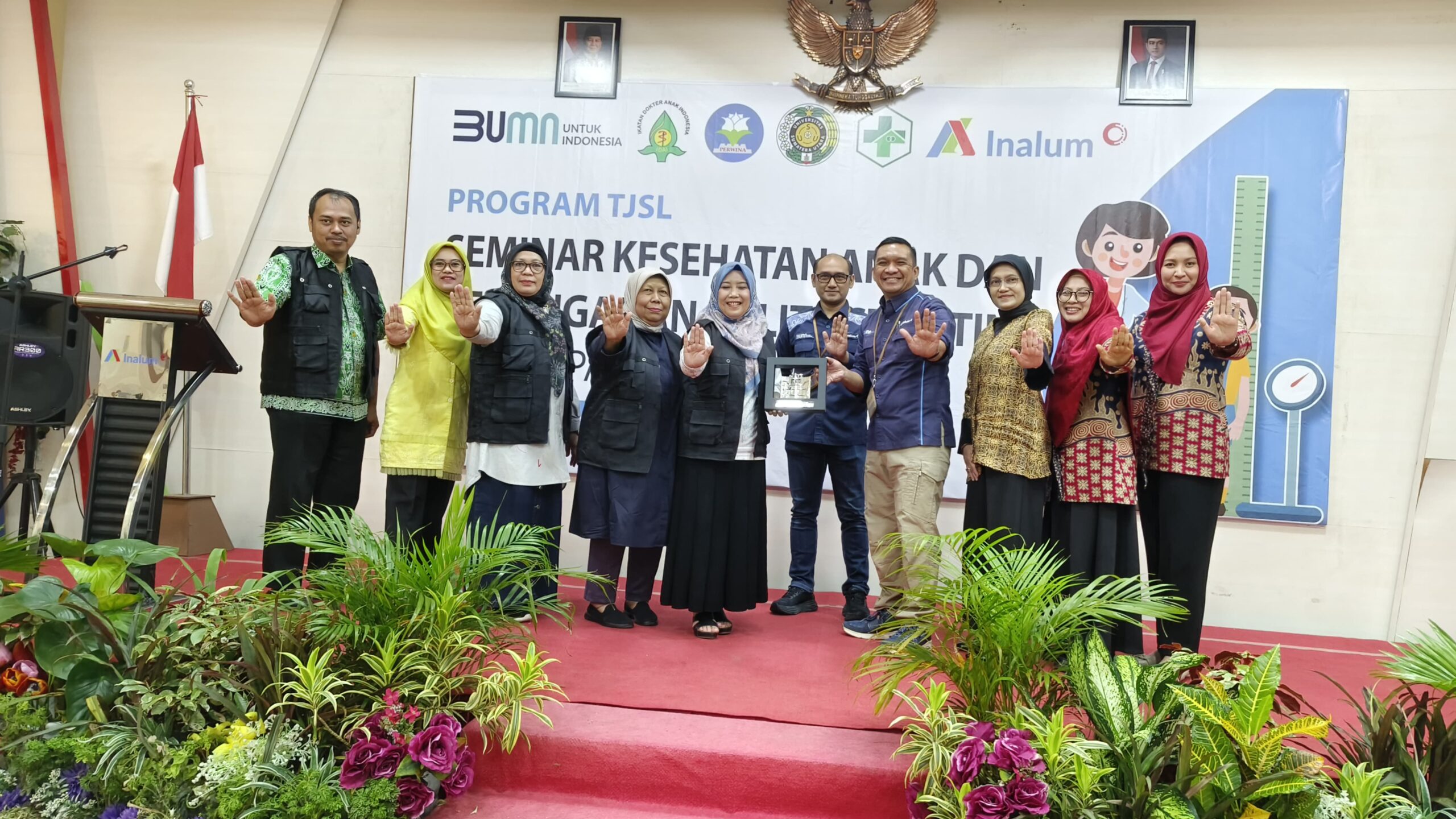 Inalum berkomitmen terus mendukung kesehatan anak-anak Indonesia sebagai bagian dari tanggung jawab sosial perusahaan. Sedangkan pakar kesehatan anak Dr Winra Pratita, MKed (Ped), SpA (K) menyampaikan materi tentang pemberian nutrisi untuk pencegahan Stunting di 1000 Hari Pertama Kehidupan (HPK). Prof dr H Munar Lubis, SpA (K) membahas mengenal kegawatan pada anak.