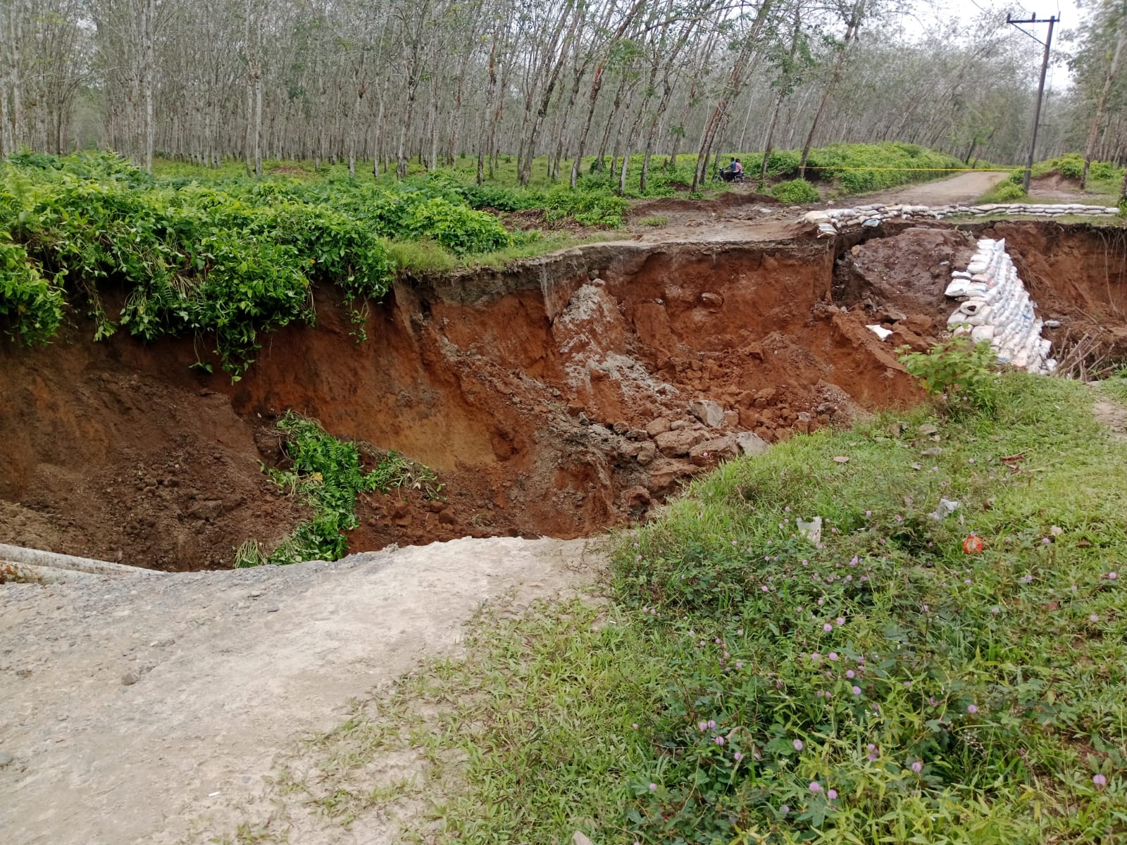 Jalan longsor sepanjang lebih kurang 20 meter dan kedalaman 15 meter yang terjadi pada malam Rabu, 8 Januari 2025 itu mengakibatkan kendaraan tidak bisa melintas, sedangkan jalan tersebut merupakan jalan utama warga untuk mencari nafkah.