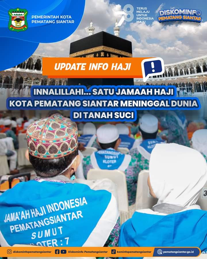 Informasi tersebut disampaikan Kepala Bagian (Kabag) Kesejahteraan Rakyat (Kesra) Setda Kota Pematang Siantar Lahiri Amri Ghoniyu Hasibuan SSTP MAP, yang juga petugas haji di Tanah Suci.