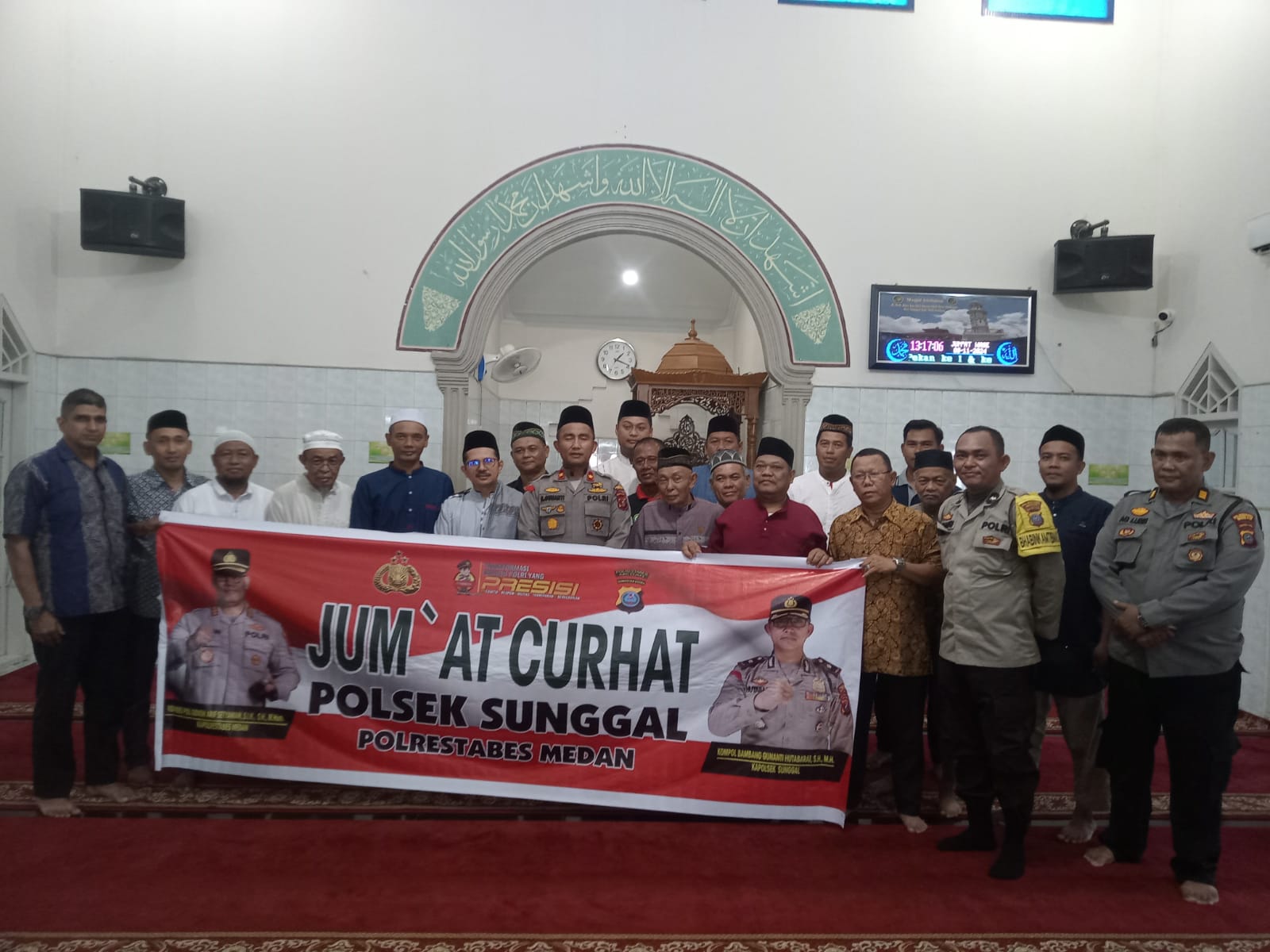 Selanjutnya usai melaksanakan sholat Jumat, Kapolsek Sunggal Kompol Bambang Gunanti Hutabarat di hadapan jamaah Mesjid menyampaikan pesan Kamtibmas.