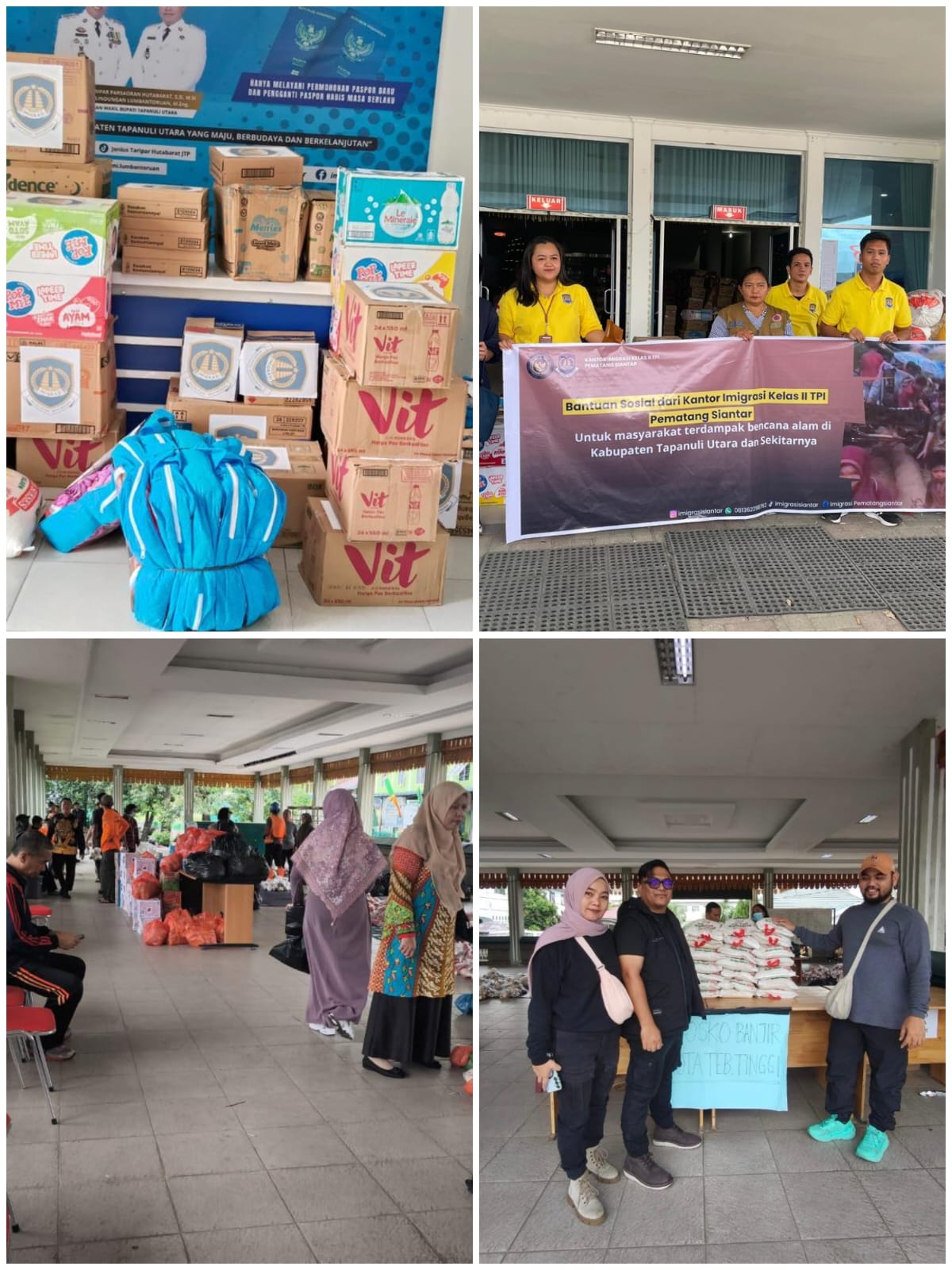 Kantor Imigrasi Kelas II TPI Pematangsiantar, melaksanakan aksi kemanusiaan dengan menyalurkan bantuan bagi masyarakat yang terdampak banjir di Kota Tebing Tinggi dan Kabupaten Tapanuli Utara, yang merupakan termasuk wilayah kerja Kantor Imigrasi Kelas II TPI Pematangsiantar, Jumat (28/11/2025).