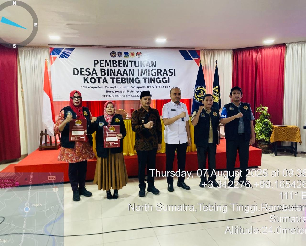 Walikota Tebing Tinggi memakaikan Rompi Desa Binaan kepada perwakilan desa/kelurahan dan penyerahan SK Desa Binaan Imigrasi oleh Kepala Kantor Imigrasi Kelas II TPI Pematang Siantar Bapak Benyamin Kali Patembal Harahap.