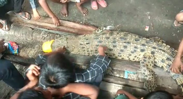 Diceritakannya ketika menangkap ikan di laut, seekor buaya terjebak rawai dan kondisi mati.