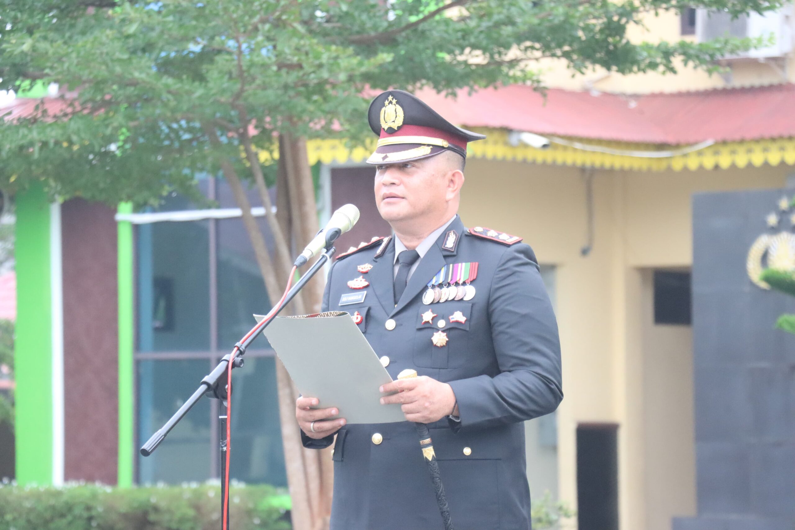 bertindak sebagai Inspektur upacara (Irup) pada Hari Pahlawan ke 80 tahun 2025 dengan tema: ‘Pahlawanku Teladanku, Terus Bergerak dan Melanjutkan Perjuangan’ digelar di Lapangan Apel Polres Batubara Senin (10/11/2025).
