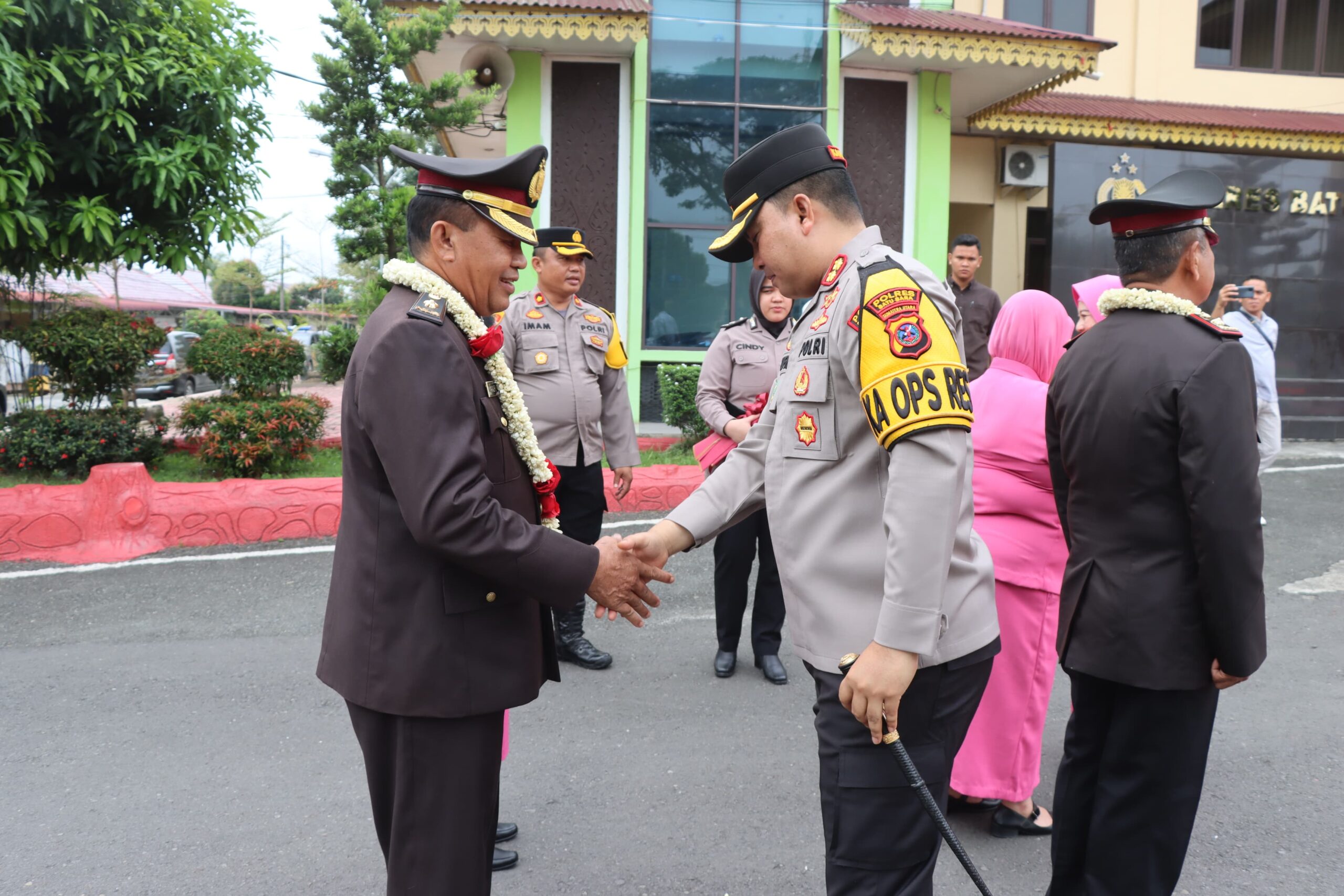 Kapolres Batubara Pimpin Upacara Pelepasan Dua Personil Purna Bhakti
